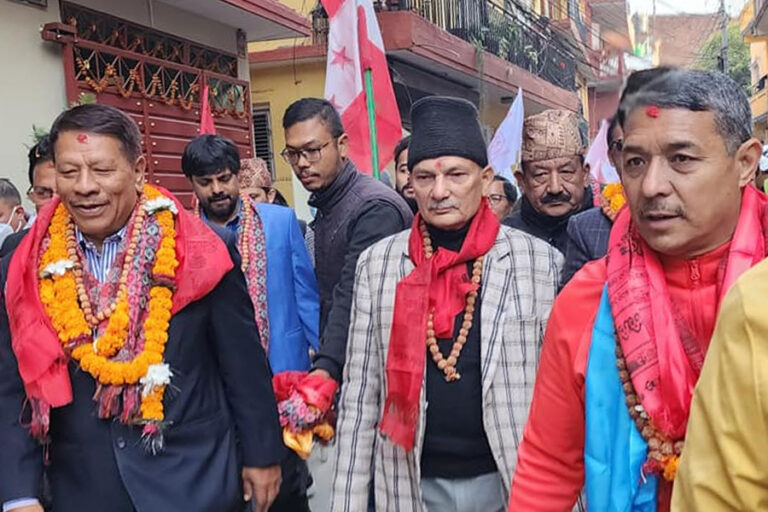 अहिलेको निर्वाचन विशिष्ट छ। सामान्य अवस्थामा दलहरूबीच प्रतिस्पर्धा हुन्छ तर, यसपटक प्रतिगमनकारी शक्तिहरुको विरुद्ध अग्रगमनकारीको लडाइँ हो। उहाँ योग्य व्यक्ति हुनुहुन्छ। स्वच्छ छविको व्यक्तित्व हुनुहुन्छ’, उनले भने,‘ हाम्रो गठबन्धनलाई बलियो बनाएर मात्रै संविधानको रक्षा र संस्थागत विकासको सुनिश्चितता हुन्छ।’