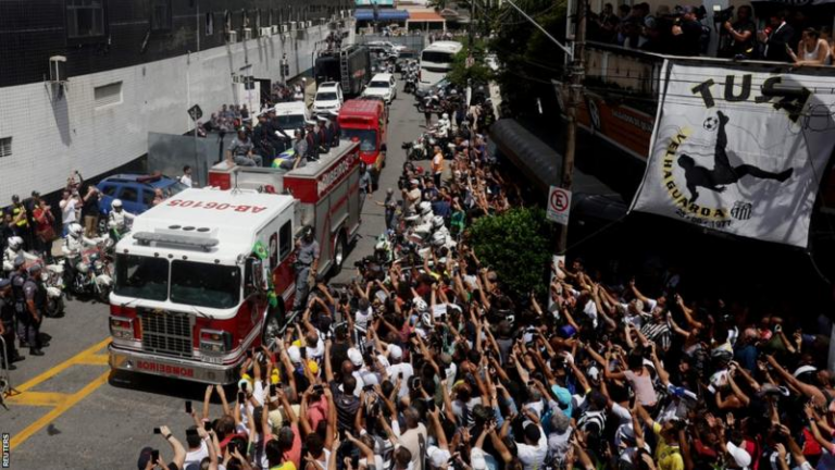 उनको शवलाई फायर ट्रकमा निजी परिवारको अन्त्येष्टिमा लगाउँदा मंगलबार मानिसहरू सडकमा भीड लागेका थिए । तीन पटकको विश्वकप विजेता पेलेको ८२ वर्षको उमेरमा २९ डिसेम्बरमा निधन भएको थियो । निस्सन्देह विश्वको सबैभन्दा महान फुटबलर पेले उनी २०२१ देखि कोलोन क्यान्सरको उपचार गराइरहेका थिए । ब्राजिलको सरकारले उनको मृत्युपछि तीन दिनको राष्ट्रिय शोक घोषणा गरेको थियो । ब्राजिलका राष्ट्रपति लुइज इनासियो लुला दा सिल्भा पनि उनको श्रद्धाञ्जली दिन सान्तोस पुगेका थिए ।