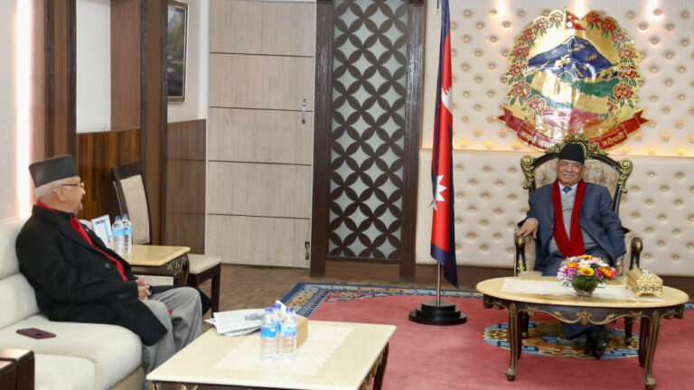 काठमाडौँ— मन्त्रिपरिषद् विस्तारसहितको विषयमा प्रधानमन्त्री पुष्पकमल दाहाल र नेकपा एमाले अध्यक्ष केपी शर्मा ओलीबीच भेटवार्ता सुरु भएको छ ।