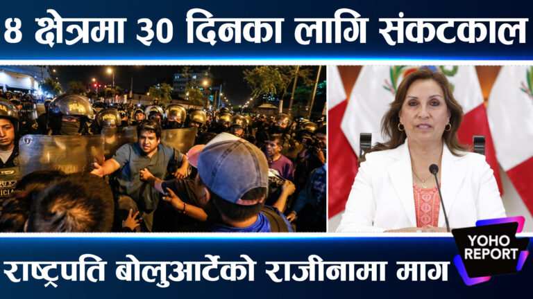 काठमाडौँ — पेरूमा नयाँनिर्वाचन र राष्ट्रपति बोलुआर्टेको राजीनामाको मागगर्दै पाँच सातादेखि जारी झडपमा कम्तीमा ४२ जनाको मृत्यु भएको छ । राष्ट्रपतिको विरोधमाहप्तौंदेखि जारी प्रदर्शन कमहुने कुनै सङ्केत देखिएको छैन । पेरूको राजधानीलिमा र अन्यतीन क्षेत्रमा राष्ट्रपति डिना बोलुआर्टेको विरोधमाहप्तौंदेखि जारी प्रदर्शन कमहुने कुनै सङ्केत देखिएको छैन । नयाँनिर्वाचन र राष्ट्रपति बोलुआर्टेको राजीनामाको मागगर्दै भएको प्रदर्शनमाकम्तीमा ४२ जनाको मृत्यु भएको छ ।