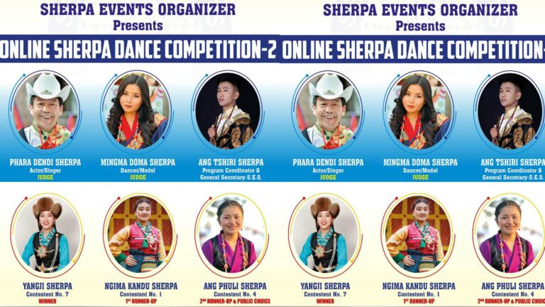 काठमाडौँ — शेर्पा इभेन्ट अर्गनाइजरद्वारा आयोजित एकल शेर्पा नृत्य प्रतियोगिताको उपाधी खोटाङकी याङ्जी शेर्पाले जितेकी छिन् । शेर्पा इभेन्ट अर्गनाईजरले आयोजना गरेको अनलाई नृत्य प्रतियोगितामा खोटाङ जिल्लाका याङ्जी शेर्पा प्रथम, रामेछापका निमा काण्डु शेर्पा दोसो र तेस्रो तथा पब्लिक चोइज बिजेतामा ओखलढुंगाका आङ फुलि शेर्पा भएकी छिन् ।