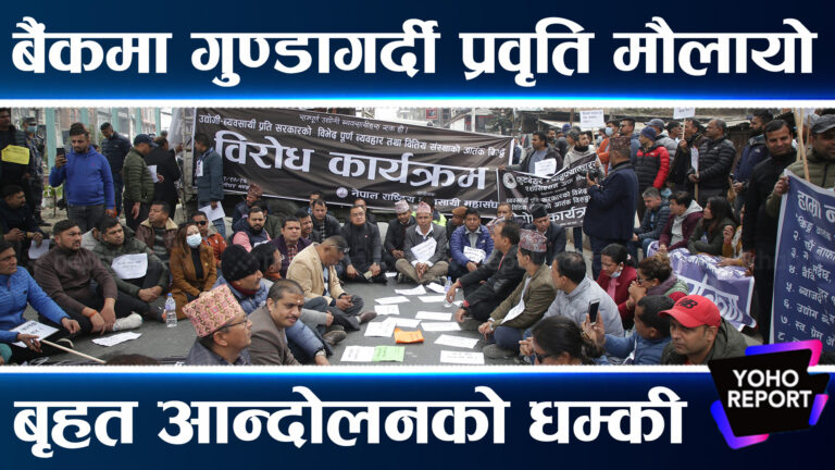 काठमाडौँ — नेपाल राष्ट्रिय व्यवसायी महासंघमा आबद्ध व्यवसायीहरुले बैंकको चर्को ब्याजदर र आतंकबिरुद्ध प्रदर्शन गरेका छन् । सोमवार काठमाडौंको माईतीघर मण्डलामा महासंघ बैंकको चर्को ब्याजदरबिरुद्ध सडक आन्दोलनमा उत्रिएको हो । बैंकहरुको चर्को ब्याजदर र आतंकबिरुद्ध यतिबेला व्यवसायी र आम नागरिक रुष्ट छन । नेपाल राष्ट्रिय व्यवसायी महासंघ त सोमबार सडक आन्दोलनमै उत्रियो ।
