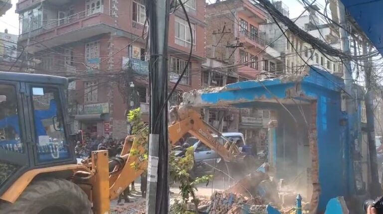काठमाडौँ — मैतीदेवी चोकस्थित सडकमै रहेको प्रहरी बिट काठमाडौं महानगर प्रहरीले मंगलबार भत्काएको छ । मध्यान्ह पुगेको महानगरपालिकाको टोलीले पहिले सामान सार्न लगाएर डोजर प्रयोग गरी भत्काएको हो ।