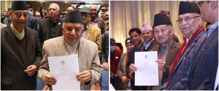 मुलुककै सर्वोच्च पदका लागि दुवै एकैसाथ प्रतिस्पर्धामा रहनुपर्ने घटनालाई अनौठो संयोगका रूपमा हेरिएको छ । आइतबार नयाँ बानेश्वरस्थित सङ्घीय संसद् भवन परिसरमा स्थापित निर्वाचन अधिकृतको कार्यालयमा बिहान १० देखि अपराह्न ३ बजेसम्म आठदलीय गठबन्धन र वर्तमान सत्ता साझेदार एमालेका तर्फबाट मात्र उम्मेदवारी मनोनयनपत्र दर्ता भएको थियो ।