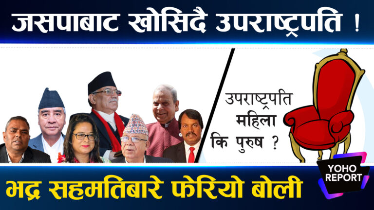 काठमाडौँ — राष्ट्रपति केन्द्रीत राजनिति आजबाट उपराष्ट्रपतितर्फ केन्द्रित बनेका छ । भद्र सहमति अनुसार उपराष्ट्रपतिको भाग जसपाको हो । तर जिम्मेवार नेताबाटै फरक खालका अभिव्यक्ति आउनु तथा संवैधानिक व्यवस्था लगायताले यो विषय उछालिएको छ । जसका लागि दलहरु आ–आफ्नै तयारीमा लाग्दा को होला त उपराष्ट्रपति ? बानेश्वरमा राष्ट्रपतिको निर्वाचन हुँदै गर्दा आफ्नो भागमा परेको भन्दै जनता समाजवादी पार्टी जसपा उपराष्ट्रपतिको उम्मेद्वार टुङ्गो लगाउने वैठकमा व्यस्त थियो ।