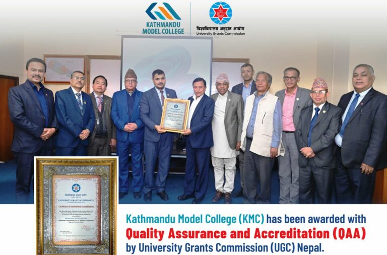 काठमााडौँ — नेपालको शैक्षिक क्षेत्रमा निरन्तर अब्बल शैक्षिक संस्थाको रूपमा परिचित बागबजारस्थित काठमाडौं मोडल कलेज गुणस्तर सुनिश्चितता तथा प्रत्यायन (क्यूएए) बाट प्रमाणित भएको छ । देशभरका क्याम्पसहरूको गुणात्मक परिवर्तन र विश्वसनीयता वृद्धि तथा समस्या समाधानलगायतका उद्देश्यसहित स्थापित विश्वविद्यालय अनुदान आयोगद्वारा गरिएको मूल्यांकनमा केएमसी क्यूएएबाट प्रमाणित भएको हो ।