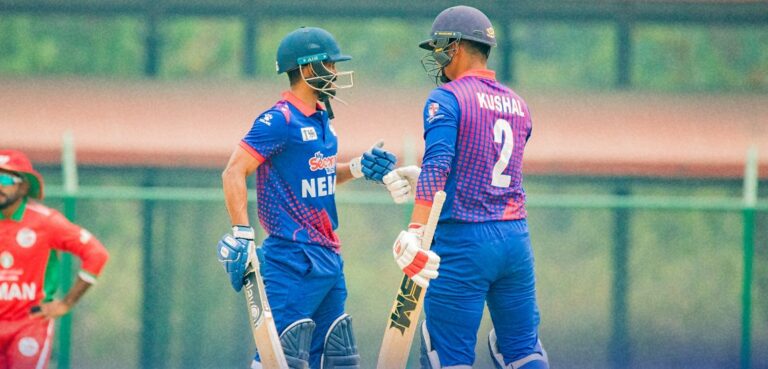 काठमाडौँ – ओमानविरुद्ध उत्कृष्ट ब्याटिङ गरेका कुशल मल्ललाई नेपालले गुमाएको छ । ४०.४ ओभरमा आउट हुनुअघि उनले मात्र ६४ बलमा एक सय आठ रन बनाए ।