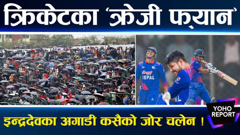उपाधि चुम्ने नेपालको दाउमा वर्षा बाधक, क्रिकेटका ‘क्रेजी फ्यान’ हरु छाता वढेरै खेलको प्रतिक्षामा बसिरहे