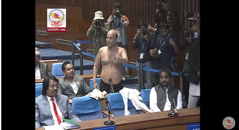 काठमाडौँ – स्वतन्त्र सांसद अमरेश कुमार सिंह संसद बैठकमै अर्धनग्न बनेका छन् ।