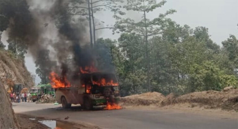 धादिङमा गुडरहेको बसमा आगलागी