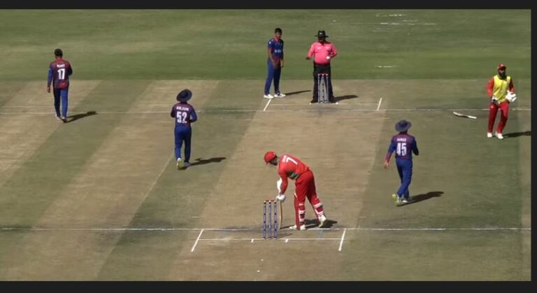 काठमाडौँ — आईसीसी एकदिवसीय विश्व कप छनोटअघि अभ्यास खेलमा ओमानले नेपाललाई २ सय ६८ रनको लक्ष्य दिएको छ । जिम्बावेको हरारेमा टस जितेर पहिले ब्याटिङ गरेको ओमान ४९ ओभर २ बलमा २ सय ६७ रनमा अलआउट भयो । ओमानका जेशान मक्सूदले १ सय ९ रन बनाए । बलिङतर्फ नेपालको सोमपाल कामीले ५ र सन्दीप लामिछानेले ३ विकेट लिए । यस्तै करण केसी र प्रतिश जिसीले १र१ विकेट लिए ।