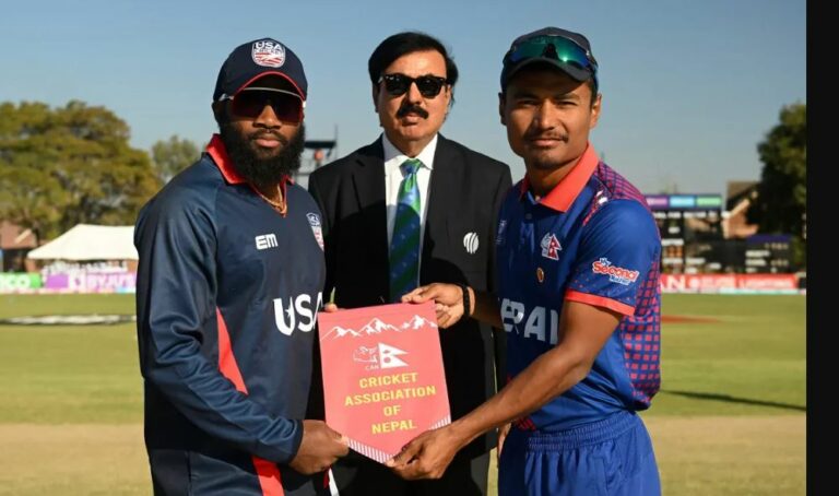 काठमाडौँ — जिम्बावेमा जारी आइसीसी एकदिवसीय विश्वकप छनोट प्रतियोगिताको आफ्नो दोस्रो खेलमा नेपालले अमेरिकाबाट २ सय ८ रनको लक्ष्य पाएको छ । जिम्बावेको राजधानी हरारेमा रहेको टागासिंगा स्पोर्टस् क्लबमा टस हारेर पहिले ब्याटिङ गरेको अमेरिका ४९ ओभरमा २ सय ७ रनमा अलआउट भयो । अमेरिकाका लागि शायन जाहान्गिरले ७९ बलमा १० चौका र ३ छक्काको सहयोगमा अविजित १ सय रनको शतकीय ईनिङ खेले ।