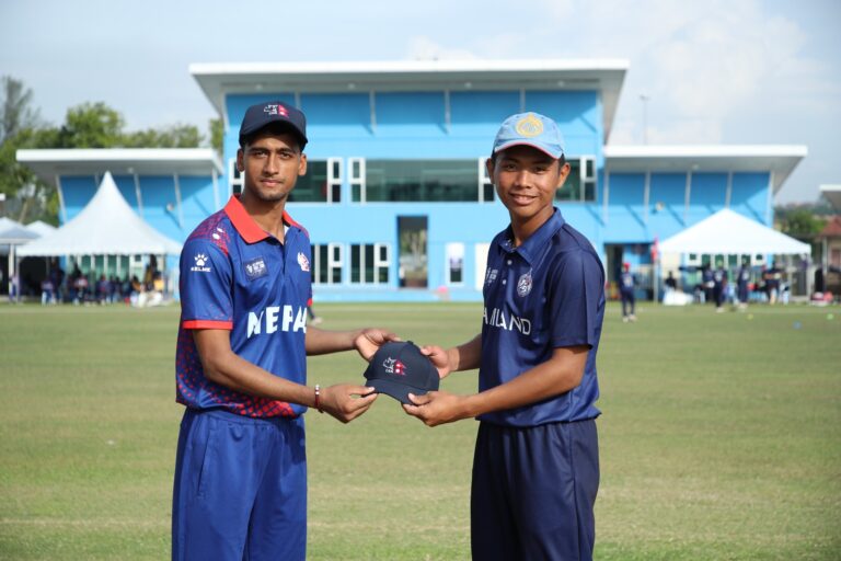 त्यसअघि मलेसियाको बांगीमा बुधबार टस जितेर ब्याटिङ गरेको नेपालले निर्धारित ३५ ओभरमा ८ विकेट गुमाउँदै २ सय ६९ रनको योगफल तयार पारेको थियो । पहिलो विकेटका लागि ओपनर निरज कुमार यादव र सुर्यांशु कोइरालाले १ सय १० रनको शतकीय साझेदारी गरेपछि नेपालले विशाल लक्ष्य दिएको थियो ।