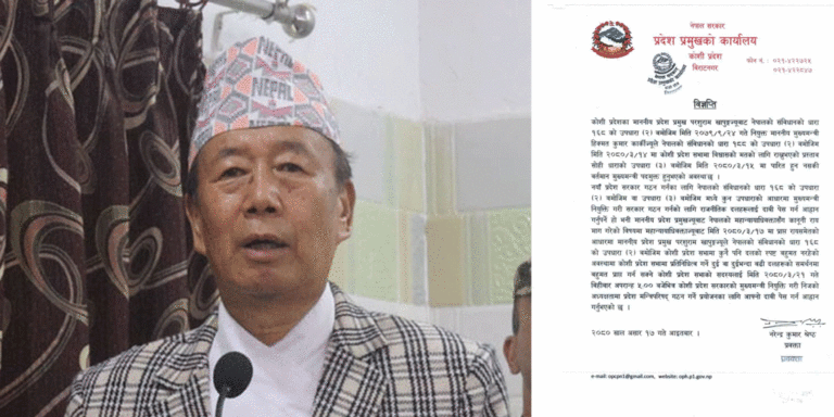 प्रदेश प्रमुख खापुङले संविधानको धारा १६८ को उपधारा (२) वा उपधारा (३) बमोजिममध्ये कुन उपधाराको आधारमा मुख्यमन्त्री नियुक्ति गरी सरकार गठन गर्नको लागि राजनीतिक दलहरुलाई दाबी पेश गर्न आह्वान गरेका प्रदेश प्रमुख कार्यालयका प्रवक्ता नरेन्द्र कुमार श्रेष्ठले जानकारी दिएका छन् ।गत पुस २४ गते मुख्यमन्त्री बनेका नेकपा एमालेका संसदीय दलका नेता हिक्मत कार्कीले प्रदेश सभा बैठकमा शुक्रबार विश्वासको मत नपाएपछि कोशीमा नयाँ सरकारको प्रक्रिया सुरु भएको हो ।