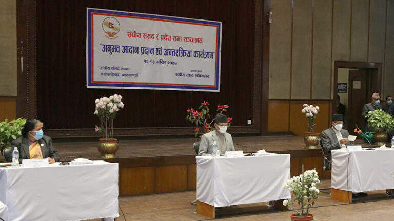 काठमाडौँ– संघीय संसद र प्रदेशसभाहरुले आफूहरुलाई बजेटको अभाव नहुनेगरी व्यवस्था गर्न नेपाल सरकारलाई ध्यानाकर्षण गराएको छ । आईतबार संघीय संसद र प्रदेशसभाको काठमाडौंमा जारी भेलाको १२ बूँदे निष्कर्ष सार्वजनिक गर्दै प्रतिनिधिसभाका सचिव पदमप्रसाद पाण्डेले सो जानकारी दिनु भएको हो । कुनै पनि कारणबाट अभाव नहुने गरी संघीय संसद र प्रदेशसभाहरुका लागि बजेटको व्यवस्था गर्नका लागि सरकारलाई ध्यानाकर्षण गराउने सो निष्कर्षमा उल्लेख गरिएको छ ।