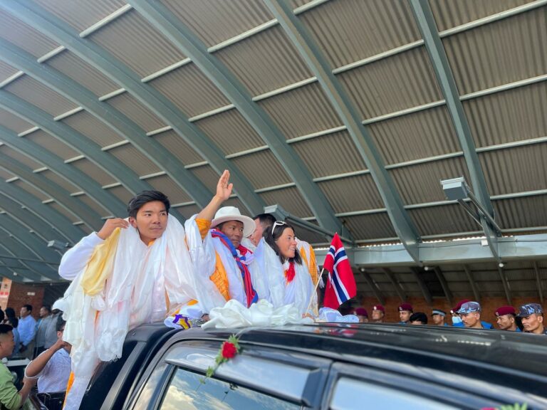 काठमाडौँ – तीन महिनामा १४ हिमाल चढेर विश्व कीर्तिमान कायम गर्ने दुई पर्वतारोहीलाई आज त्रिभुवन अन्तरराष्ट्रिय विमानस्थलमा भव्य स्वागत गरिएको छ ।