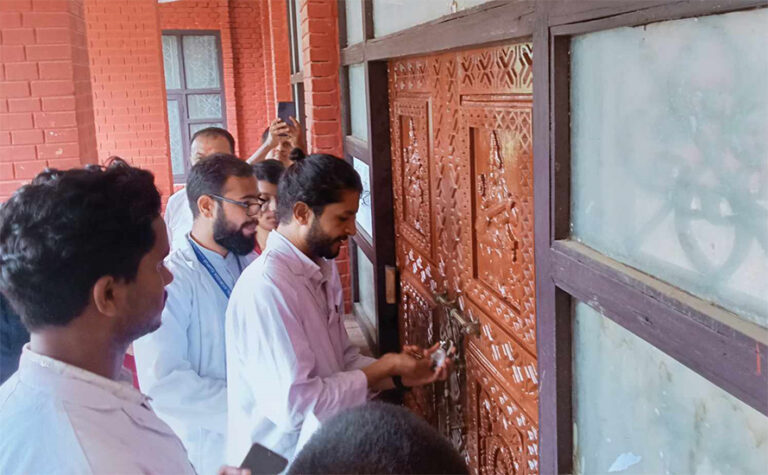 काठमाडौँ– दाङस्थित नेपाल संस्कृत विश्वविद्यालयमा लागेको ताला ५५ दिनपछि खुलेको छ । गत असार ३ गते स्वतन्त्र विद्यार्थी युनियन केन्द्रीय आयुर्वेद विद्यापीठले विश्वविद्यालयको केन्द्रीय कार्यालयमा लगाएको ताला आज शुक्रबार खोलेका हो ।