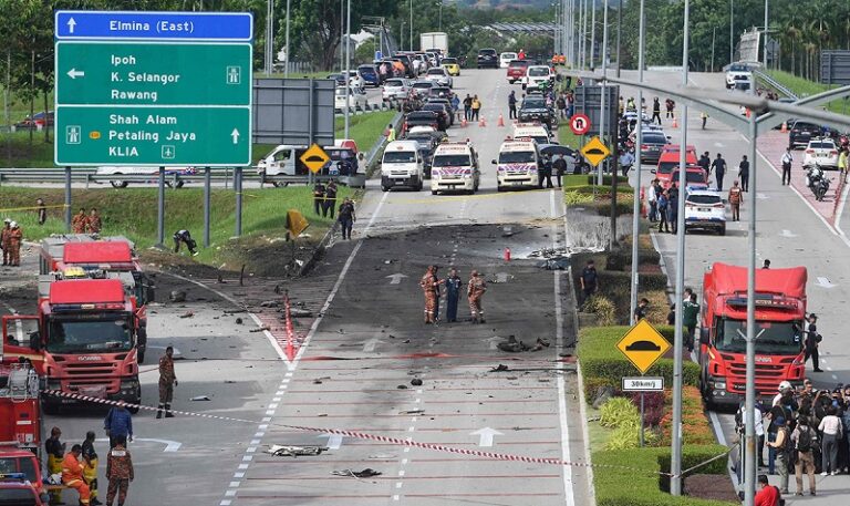 काठमाडौँ — मलेसियाको मध्य सेलान्गोर राज्यमा आज बिहीवार एक सानो निजी विमान सडकमा ठोकिँदा १० जनाको ज्यान गएको छ । विमान दुर्घटना हुँदा विमानमा सवार आठ जना र सडकमा मोटरसाइकल र कारमा सवार दुई जनाको ज्यान गएको छ ।