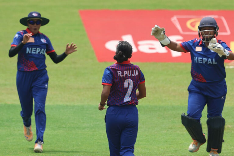 काठमाडौँ — चार देश सम्मिलित महिला टी–२० क्रिकेटमा नेपालले लगातार दोस्रो खेल पनि जितेको छ । आज (बुधबार) भएको खेलमा नेपालले कुवेतलाई ३४ रनले हराउँदै लगातार दोस्रो खेल जितेको हो । जितका लागि नेपालले दिएको ९० रनको लक्ष्य पछ्याएको कुवेत निर्धारित २० ओभरमा ८ विकेट गुमाउँदै ५५ रनमा समेटियो । कुवेतका लागि जिफा जिलानीले सर्वाधिक ११ तथा खादिजा खलीलले १० रन बनाउनुबाहेक अन्य कुनै पनि खेलाडीले दोहोरो अंकमा रन बनाउन सकेनन् । कुवेतलाई ससतैमा समेट्ने क्रममा इन्दु बर्माले सर्वाधिक ३ विकेट लिइन् ।