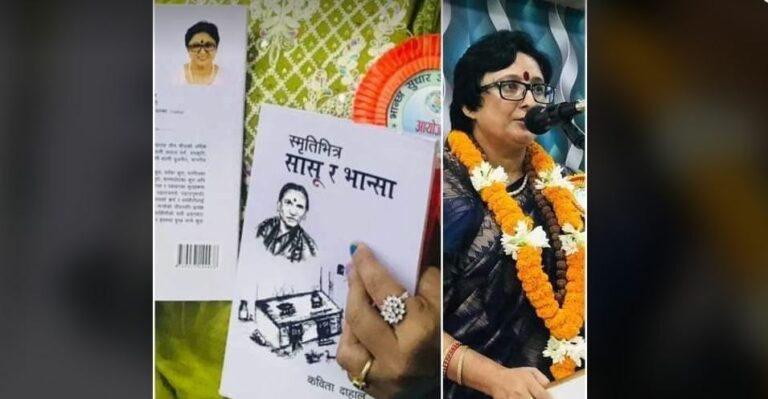 काठमाडौँ – लेखक तथा गीतकार कबिता दाहालद्वारा लिखित ‘स्मृतिभित्र सासू र भान्सा’ पुस्तक सार्वजनिक भएको छ । भान्सा सुधार अभियान नेपालले आइतबार राजधानिमा एक कार्यक्रम गर्दै वरिष्ठ गीतकार एवम् सङ्गीतकार गणेश रसिकको प्रमुख आतिथ्यमा पुस्तक विमोचन गरेको हो । सो कार्यक्रम गीतकार दाहालका भजन, आधुनिक गीत र भान्सा सुधार सम्बन्धी सचेतना जगाउने गीतको म्युजिक भिडियो सार्वजनिक गरिएको थियो ।
