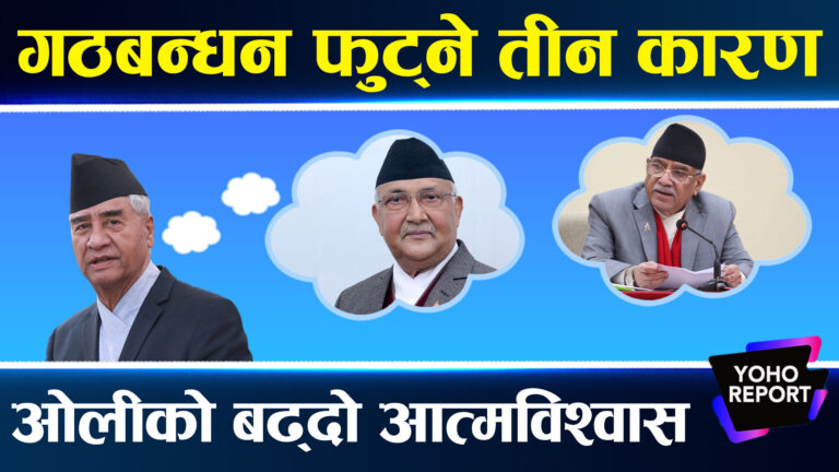 काठमाडौँ — एजेण्डा मिलेकै कारण गठबन्धन बनेको र पाँचैबर्ष टिक्ने दावीका विच सत्तारुढ दलहरुमा बढ्दो टकरावले नयाँ समिकरणको चर्चा सुरु भएको छ । जहाँ कोशी प्रदेशमा मध्यावधी रोक्नलाई माओवादी वा कांग्रेसमध्ये एकले सघाउनुपर्ने अवस्था केन्द्रसम्मै समिकरणको आधार त बन्दैन भन्ने आशंका समेत छ । जसको प्रतिरोध गर्दै सत्ताघटक दलहरुले यहि गठबन्धन पाँच बर्ष टिक्ने सार्वजनिक अभिव्यक्ति दोहोर्याईरहदाँ यहि गठबन्धन कायम रहे चाँहि के हुन्छ भन्नेमा समेत चासो बढेको हो ।