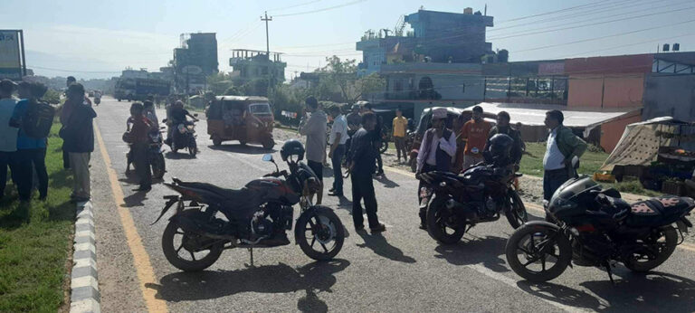 आफन्तले ठक्कर दिने मोटरसाइकल खोजेर चाकललाई पक्राउ गर्नुपर्ने माग राख्दै गोकुल कटेज नजिकै कर्णाली राजमार्ग अवरुद्ध गरेका छन् ।