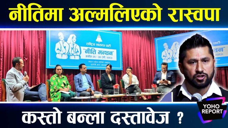 नीति, विचार, सिद्धान्तभएनभन्ने आलोचनाबाट थाकेको राष्ट्रिय स्वतन्त्र पार्टी आफ्नो मार्ग पहिल्याउन निरन्तर छलफलमा छ । पार्टी स्थापनाको डेढ वर्ष लाग्दै गर्दा पनि अहिलेसम्म सैद्धान्तिक धार स्पष्टपार्न नसकेको रास्वपापार्टीको वैचारिक दस्तावेज तयार पार्न लागिपरेको हो । केन्द्रीय सदस्यको छलफल पछि रोल्पासहितको १९ जिल्ला पुगेर नीतिनिर्माणमा जनभावबुझेको रास्वपा अब विज्ञसँग छलफलगर्दै नीतिमन्थनमा जुटेको छ ।