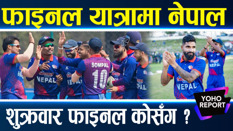 नेपालले लिग चरणका चारै वटा खेलमा जित निकाल्दै फाइनल पुगेको हो । काठमाडौंमा जारी त्रिकोणात्मक सिरिजको दोस्रो भेटमा समेत नेपालले यूएईलाई हराएको छ । सोमबार भएको लिग चरणको आफ्नो अन्तिम खेलमा नेपालले यूएईलाई ५ विकेटले हराएको हो । मूलपानी क्रिकेट मैदानमा जितका लागि १ सय ६५ रनको लक्ष्य पाएको नेपालले १९.२ ओभरमा पाँच विकेट गुमाएर विजयी रन बटुल्यो ।