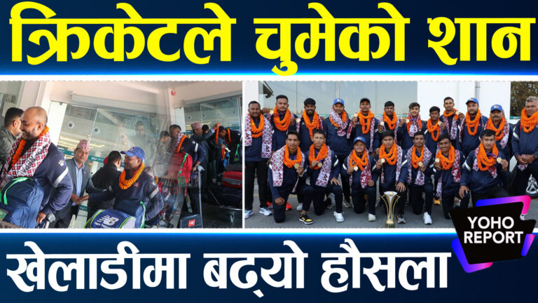 मलेसियाबाट उपाधि बोकेर फर्कियो नेपाली क्रिकेट टोली, विश्वकप जित्ने लक्ष, विमानस्थलमा भव्य स्वागत
