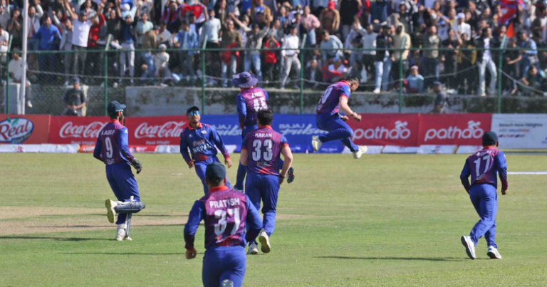 काठमाडौं– त्रिकोणात्मक क्रिकेट सिरिजको उपाधि यूएईले जितेको छ । शुक्रबार फाइनल खेलमा नेपाललाई ४ विकेटले हराउँदै यूएईले सिरिज हात पारेको हो । नेपालले प्रस्तुत गरेको १ सय ६३ रनको लक्ष्य यूएईले ६ विकेट गुमाएर १ बल अगावै पुरा गर्यो । कप्तान समेत रहेको ओपनर मुहमद वासिमले २२ बलमा ४५ रन बनाएर यूएईलाई राम्रो सुरुवात दिलाएका थिए । अर्का ओपनर आयांश शर्माले २५ र वृत्य अरविन्दले २६ रनको योगदान दिएका थिए ।