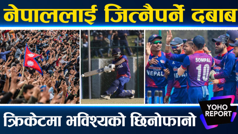 काठमाडौँ — आईसीसी टी—२० विश्वकप छनोट क्रिकेट प्रतियोगिताको समूह चरणको आफ्नो अन्तिम खेलमा बिहीबार नेपाली टोली ओमानसँग पाँच रनले पराजित भएको छ । पराजयसँगै नेपालले सेमिफाइनल खेल यूएईसंग खेल्ने भएको छ । बनेको छ पहराले यो छाती मेरो, बगेको छ छहरा रगतमा मेरो पखेरुमा जन्मी पाखुरामा खेल्ने, म झुक्दै नझुक्ने नेपालको छोरो । म झुक्दै नझुक्ने नेपालको छोरो । गोपाल योंजनको शब्द स्वारमा सुसजित यो गित जस्तै नेपाली क्रिकेट खेलाडीहरुले आज कीर्तिपुर मैदानमा आफुलाई अन्तिसमम उभ्यायो ।