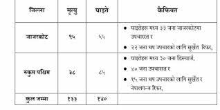 नेपाल प्रहरीकाअनुसार जाजरकोटमा ९५ र रुकुम पश्चिममा ३८ जनाको मृत्यु भएको विवरण प्राप्त भएको छ ।