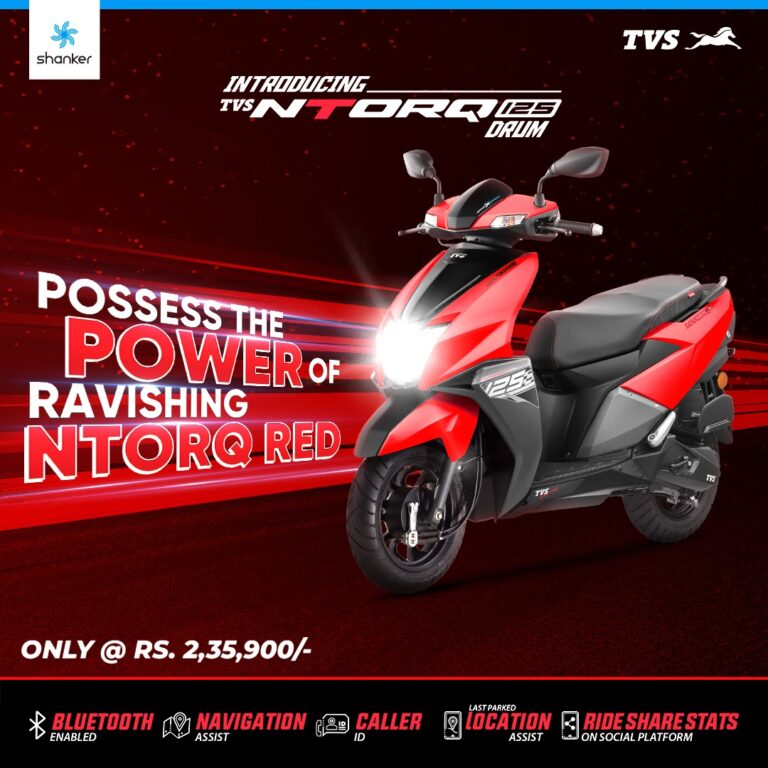 काठमाडौँ — नेपालको लागि टिभिएस् स्कुटर र मोटरसाइकलको एक मात्र आधिकारिक वितरक जगदम्बा मोटर्सले टिभिएस महा एक्सचेन्ज महोत्सवमा एनटर्क १२५ सीसी ड्रम रातो रङमा सार्वजनिक गरेको छ । राम्रो माइलेज दिने एनटर्क १२५ सीसी ड्रममा स्मार्टकनेक्ट र ब्लुटुथ कनेक्टिभिटी पनि उपलब्ध छ । शंकर ग्रुपका एक्जिक्युटिभ डाइरेक्टर अखिल गुप्ताले भने, ‘ग्राहकवर्गको उच्च मागलाई मध्यनजर गर्दै टिभिएस एनटर्क ड्रमलाई बोल्ड रातो कलरमा लन्च गर्न पाउँदा हामी हर्षित छौँ ।
