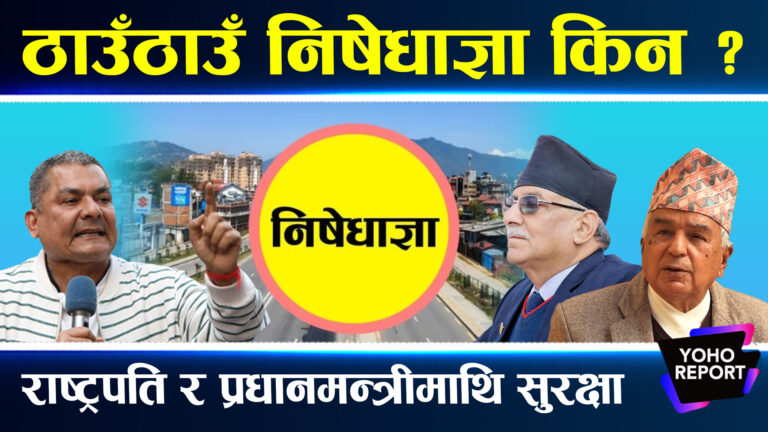 काठमाडौँ — मंसिर सात गते (भोलि) हुने विरोध प्रदर्शनलाई लक्षित गर्दै सरकारले काठमाडौँ र ललितपुरका विभिन्न क्षेत्रमा निषेधाज्ञा जारी गरेको छ । काठमाडौ जिल्ला प्रशासनले काठमाडौको पुतलीसडक–माइतीघर–बानेश्वर क्षेत्रमा ३० दिन र ललितपुर जिल्ला प्रशासनले पुल्चोक क्षेत्रमा ६ महिनाका लागि निषेधाज्ञा जारी गरेको हो । प्रशासनको निषेधज्ञामाथि प्रश्न मात्र तेर्सिएको छैन सडककै साहारामा सत्तामा पुगेकाहरु अहिले सडकसँग किन डराई रहेका छन त ? लोकतन्त्रमा नागरिकको विरोधलाई नै बन्देज गर्ने सरकारको नीतिको चौतर्र्फी आलोचना भइरहेको छ ।