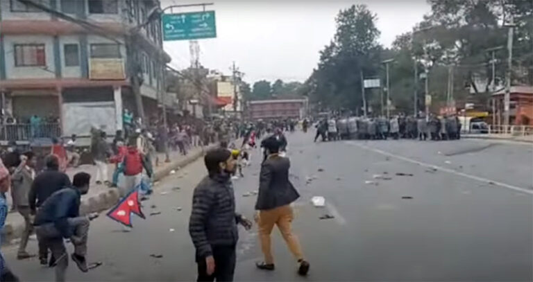 काठमाडौँ — व्यवसायी दुर्गा प्रसाईं समर्थकको प्रदर्शनमा प्रहरीले लाठीचार्ज गरेको छ । काठमाडौंको गौशालामा प्रदर्शन गरिरहेकाहरुमाथि प्रहरीले बल प्रयोग गरेको हो । उनीहरूले गौशाला चोकमा बाटो बन्द गरेर आमसभा गर्न खोजेपछि प्रहरीसँग झडप भएको हो ।