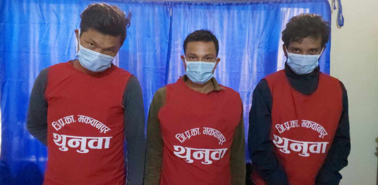 हेटौंडा उपमहानगरपालिका वडा नं।९ स्थित सूर्यप्रसाद पौडेलको घरमा गोली प्रहार गरेर भागेका तीन जनालाई प्रहरीले पक्राउ गरी आज सार्वजनिक गरेको हो।