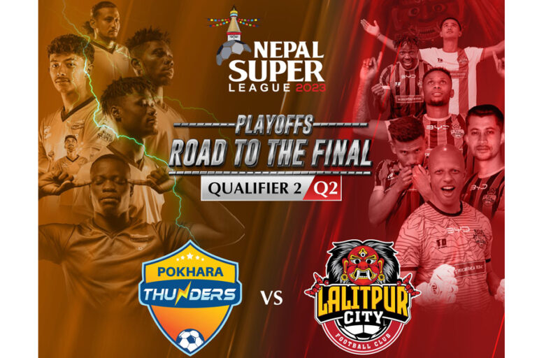 काठमाडौं — नेपाल सुपर लिग (एनएसएल) २०२३ को दोस्रो क्वालिफायरमा आज पोखरा थण्डर्स र ललितपुर सिटी एफसीबीच प्रतिस्पर्धा हुँदैछ । खेल त्रिपुरेश्वरस्थित दशरथ रंगशालमा साँज साढे ५ बजे सुरु हुनेछ ।