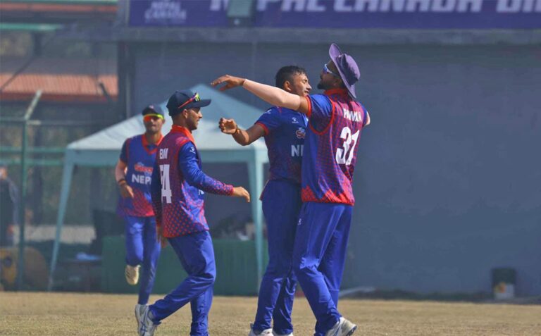 नेपालको जितका लागि कप्तान रोहित पौडेलले ८७, देव खनालले ७६, अनिलकुमार साहले ५०,भीम सार्कीले २३ र पवन सर्राफले १४ रनको योगदान गरे ।