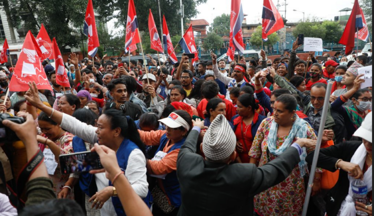 काठमाडौं । महाानगरपालिका भित्रका फुटपाथ व्यवसायीहरुले महानगरविरुद्ध प्रदर्शन गरेका छन् । राष्ट्रिय स्वोरोजगार व्यवसायी संघ, नेपाल सडक व्यापार व्यवसायी संघ र फुटपाथ व्यापारीहरुले संयुक्त रूपमा आइतबार काठमाडौ महानगरपालिकाको कार्यालय घेराउ गर्दै प्रदर्शन गरेका हुन् ।