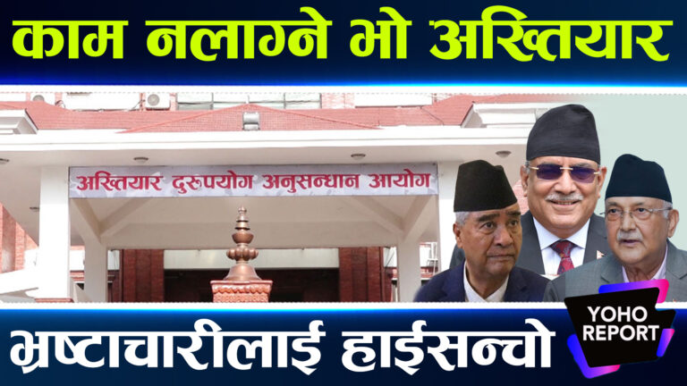 काठमाडौँ – अख्तियार दुरुपयोग अनुसन्धान आयोग भ्रष्टाचार नियन्त्रणमा निकम्मा भएको आक्षेपका बिच आज आयोगले ३३ औं स्थापना दिवस मनाएको छ । शीर्ष नेतृत्व र उच्चपदस्थलाई साक्षी राखेरसमेत प्रमुख आयुक्तले नै लाचारी प्रस्तुत गरे । जसलाई सीआईबीकै सक्रियतालेसमेत पुष्टि गर्दा अख्तियारमाथि के बितिरहेको छ त ?