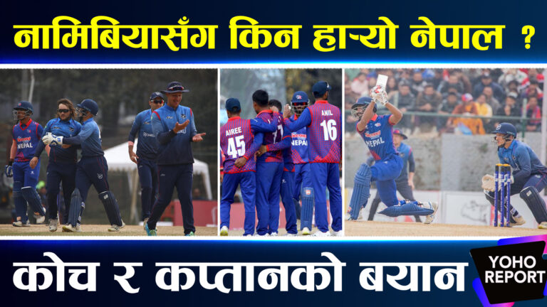 काठमाडौँ— आईसिसी विश्वकप क्रिकेट लिग–२ अन्तर्गतको खेलमा नामिबियासँग नेपाल लगातार दोस्रो खेलमा पराजित भएको छ । आज भएको खेलमा नेपाल २ विकेटले पराजित भएको हो । टस हार्दा पहिले ब्याटिङ गर्ने मौका नपाउनु तथा कप्तानसहित ओपनर ब्याट्सम्यानहरु नै चल्न नसक्दा नेपालले हाल ब्यहोर्नु परेको हो ।
