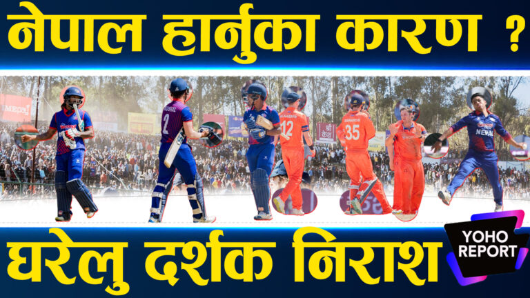 नेपालले २३ रन जोड्दा ३.३ ओभरमा ओपनर कुशल भुर्तेल आउट भएका थिए । त्यसपछि आएका कप्तान रोहित पौडेल १९ बलमा २५ रन बनाउँदै आउट भए । रोहितले ओपनर आसिफ शेखसँग तेस्रो विकेटका लागि ५९ रनको साझेदारी गरेका थिए । त्यसपछि गुल्सन झा र आसिफले नेपालको इनिङ सम्हालेका थिए । आसिफ अर्धशतक पूरा गर्नबाट ३ रनले चुके । उनले ३७ बलमा १ चौका र ३ छक्का हानेका थिए । गुल्सन झाले ११ बलमा ३ छक्काको मद्दतमा २६ रन बनाए । पाँचौ नम्बरमा ब्याटिङमा आएका दीपेन्द्र सिंह ऐरीले १ रन मात्र बनाए । करण केसीले ९ रन बनाए भने आरिफ शेखले खाता नै खोल्न सकेनन् । विश्वकप लिग टू नेपाल आएर नेदरल्यान्ड्स र नामिबियालाई समावेश गरेर क्यानले त्रिकोणात्मक क्रिकेट सिरिजको आयोजना गरेको हो । टी ट्वान्टी त्रिकोणात्मक सिरिज नेपालले यस वर्ष खेल्ने विश्वकप तयारीको सुरुवातसमेत हो । अहिले पनि नेपाल क्रिकेट पूर्वाधारको हिसाबमा धेरै नै कमजोर छ ।