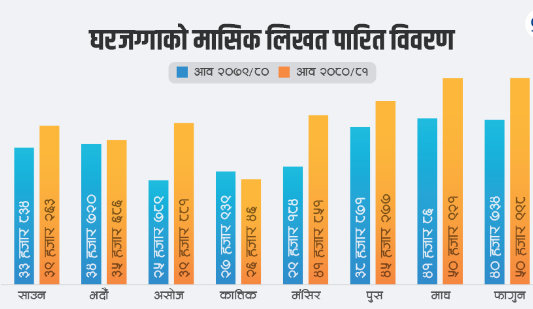 संख्यात्मक रूपमा घरजग्गा कारोबारमा गत वर्षको तुलनामा उल्लेख्य वृद्धि देखिए पनि सरकारले प्राप्त गर्ने राजस्व भने घटेको भूमि व्यवस्थापन तथा अभिलेख विभागले जनाएको छ ।