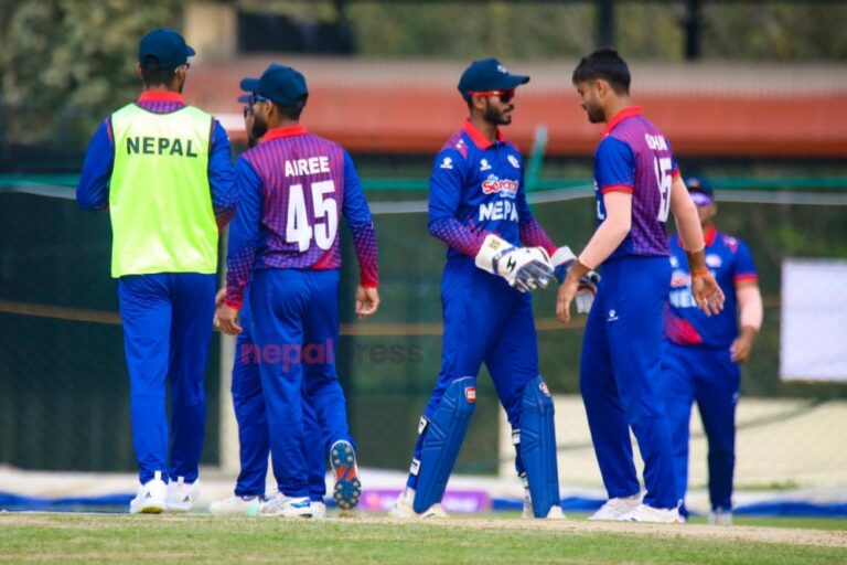 टी-यू क्रिकेट मैदानमा १२२ रनको लक्ष्य नेपालले १६।१ ओभरमा ४ विकेट गुमाएर भेटाएको हो ।