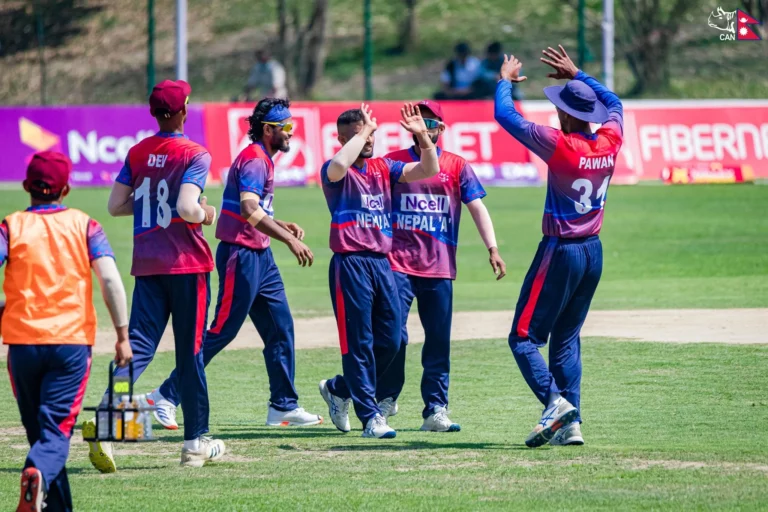 काठमाडौँ – आयरल्यान्ड वुल्भ्सविरूद्धको तेस्रो टी-२० खेलमा नेपालको ‘ए’ क्रिकेट टिमले जित निकालेको छ। यसअघिका दुई खेलमा पराजित भएपछि सिरिज गुमाएको नेपालले तेस्रो खेलमा आयरल्यान्डलाई ३ रनले पराजित गर्यो।