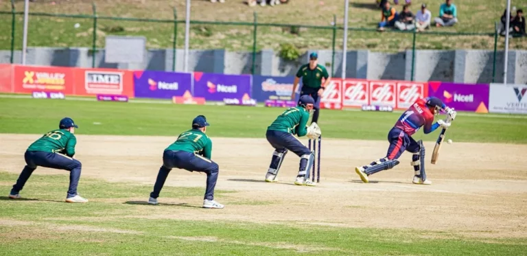 बसिर अहमद २१ बलमा २ चौका र १ छक्कासहित २० रनमा आउट भए । साहब आउट भएपछि नेपाललाई जित्नलाई २३ रन चाहिँएको थियो । मौशम र रिजन ढकालको रन लिनेक्रममा तालमेल नमिलेपछि मौशम रन आउट भएका थिए । रिजन १२ रनमा नट आउट रहे ।