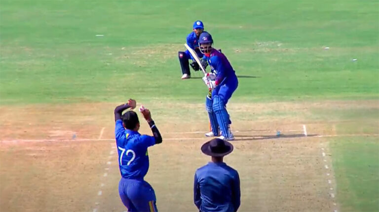 गुजरातका जयमीत पटेलले ४ ओभरमा ४६ रन खर्चेर ३ विकेट लिए । आर्यन देशाई र धरुशान्त सोनीले २–२ विकेट लिए । नेपालले शुक्रबार बरोडासँग खेल्नेछ । फाइनल आइतबार हुनेछ । नेपालले बरोडा र गुजरात मध्य एकसँग फाइनल खेल्नेछ ।