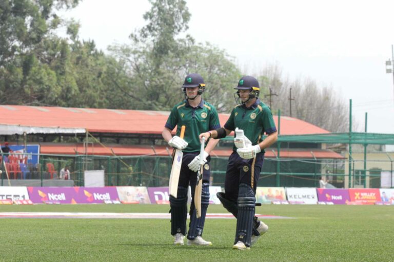 काठमाडौँ— खराब ब्याटिङले निरन्तरता पाउँदा एकदिवसीय शृंखलाको दोस्रो खेलमा आयरल्यान्ड वुल्सविरुद्ध नेपाल ‘ए’ ११४ रनले पराजित भएको छ । यो जितसँगै वुल्भ्स तीन खेलको एकदिवसीय शृंखलामा अन्तिम खेलअगावै च्याम्पियन बनेको छ ।