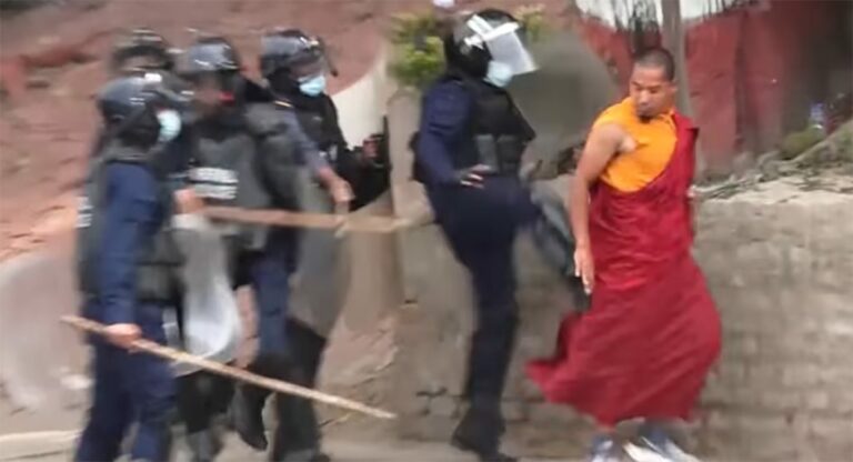 एकजना भिक्षुमाथि प्रहरीले पछाडिबाट लात्ती प्रहार गरेको भिडिओ सामाजिक सन्जालमा भाइरल छ । धेरैले उक्त भिडिओ सामाजिक सञ्जालमा पोस्ट गर्दै गृहमन्त्री रवि लामिछाने र नेपाल प्रहरीको आलोचना गरिरहेका छन् । यो समाचार तयार पार्दासम्म यस घटनाबारे गृहमन्त्रालय र गृहमन्त्री रवि लामिछानेको प्रतिक्रिया आइसकेको छैन । तर नेपाल प्रहरीले भने भिक्षुमाथि भएको दुर्व्यवहारको सम्बन्धमा नेपाल प्रहरी प्रधान कार्यालयको गम्भीर ध्यानाकर्षण भएको जनाएको छ ।