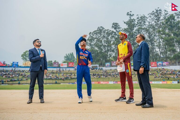 काठमाडौँ – नेपालले वेस्टइन्डिज ए सँगको पाँच खेलको टी(२० सिरिज अन्तर्गत पहिलो खेलमा टस जितेर पहिला फिल्डिङ गर्दैछ ।